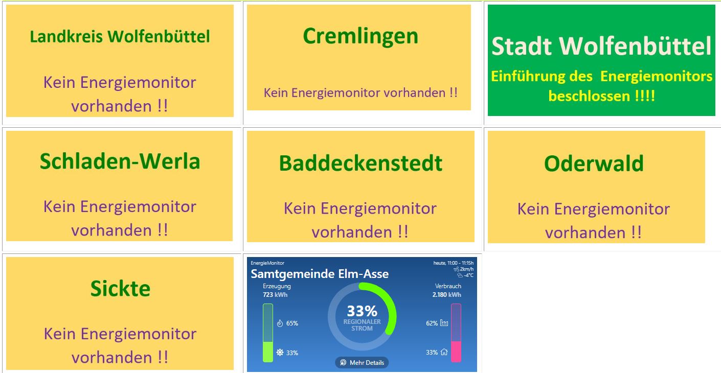 Dies wird dann der zweite Monitor nach dem Energiemonitor Elm-Asse im Landkreis Wolfenbüttel sein der allen Bürgern alle Daten im Bereich elektrischer Strom anzeigt.